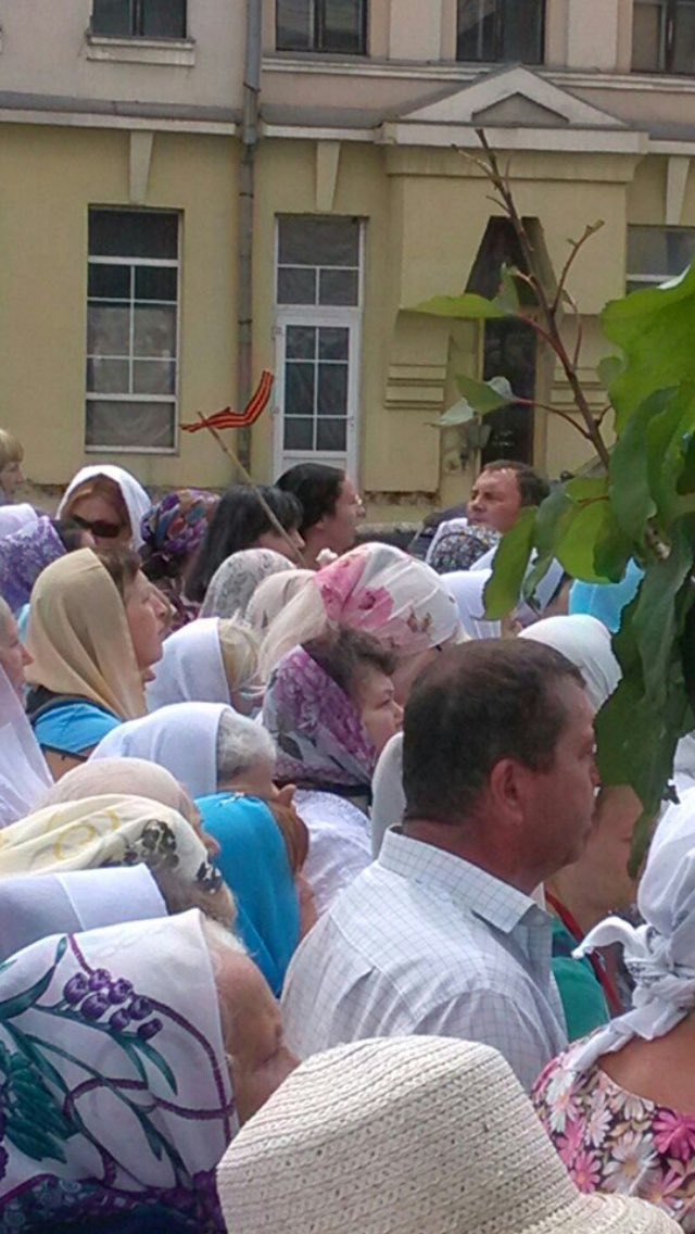 В Харькове московский патриархат устроил "крестный ход за мир": женщина несет георгиевскую ленточку на палочке