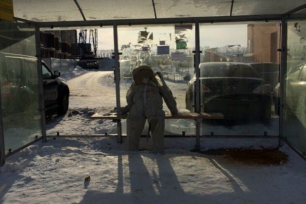 Космонавт NASA ждёт автобус, чтобы добраться до места запуска ракеты
