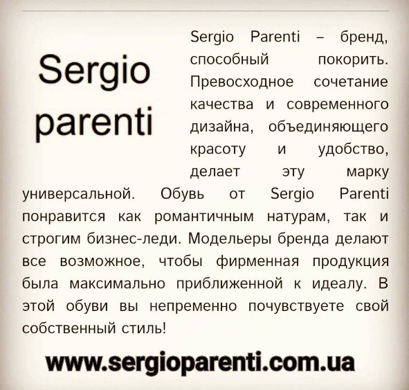 "Sergio parenti". Творча майстерня з виготовлення взуття ручної роботи http://www.sergioparenti.com.ua/